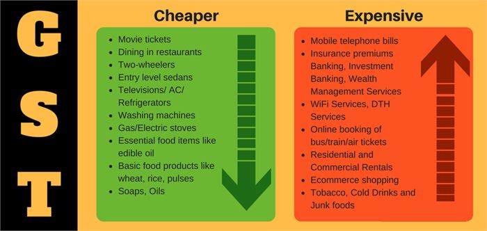 For a common man, GST will be like bitter pills. As the GST gets implemented, renewal premium for life insurance policies, banking and investment management services, Wi-Fi, DTH services, online booking of tickets as well as mobile bills are expected to become more expensive. Whereas, watching a movie and dining out at a restaurant will become cheaper in some states. Prices of white goods like television and washing machines are likely to see very less or no change.