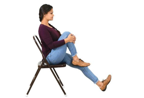If you have a soft corner for penguins then this position is for you. Just flap, flap, flap! Mimic a penguin, stand with your arms by the sides, palms facing backward, pulse the arms for 5 seconds and release. Repeat for 10 times, sit back on your chair, do some air circling with the arms and then let them loose on the armrest!