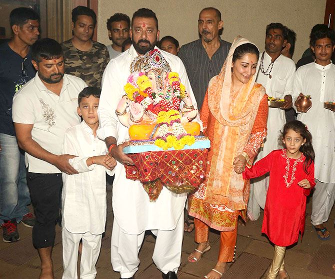 Sanjay Dutt says goodbye to Ganpati bapa on visarjan, See pic