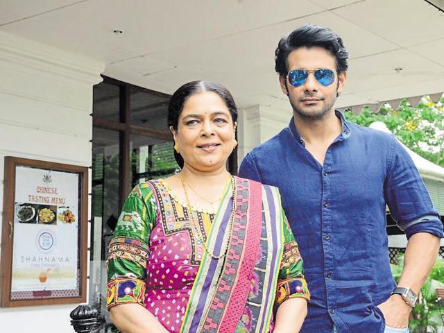 (Reema Lagoo with her on-screen son, actor Viraf Patel, on the sets of TV show 'Naamkarann')