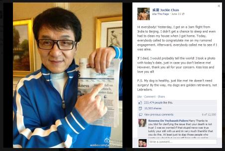 2. Jackie Chan: Everyone’s favorite martial art expert who gained recognition fighting felons on-screen had to kick aside the rumors of his death that spread like wildfire in the year 2016.