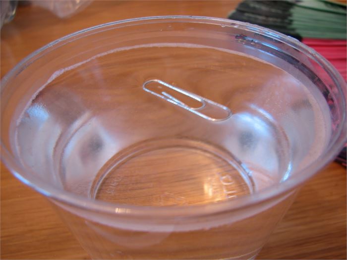 Another great use of paper clips is that you can use them to demonstrate a cool science experiment to your kids. Put a paper clip in water and it should sink. Next, place a tissue on the water surface and then, put a paper clip on it. Gently push the tissue in the water, and the paper clip still floats! This is called surface tension.