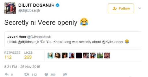 He is frequently seen bombarding Instagram and Twitter with his comments on Kylie's photo and video posts. Diljit Dosanjh is a fan of the Kardashian family too. His posts (usually in Punjabi) are a visual treat and subject of entertainment for his fans.
