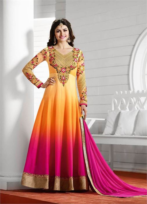 Anarkali suits have been in the fashion market for a long time now and they do not seem to be fading away anytime soon. Anarkali suits are found in various styles, like low-collared Anarkalis, embroidered Anarkalis or printed ones, to name a few. Heavy jewellery and the right heels can work magic with this outfit.