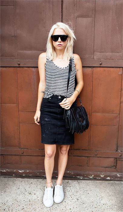 You can mix things up and go for a crewneck t-shirt with a miniskirt.