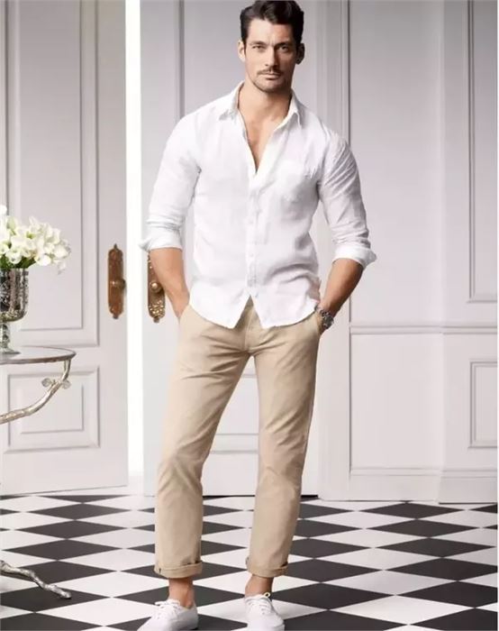 A white shirt will just make you look irresistible. Wear khaki pants beneath it.