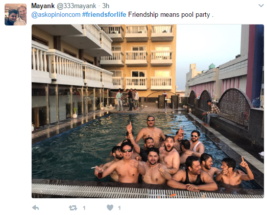 Mayank loves his friends and for him, friendship means pool party. Well, truly said Mayank.