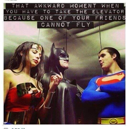 #9. Yes, yes, we all know that Batman can’t fly. But it is only him who Superman can be afraid of enough and take the lift with.