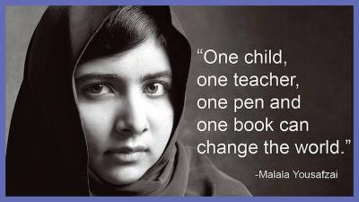 3) 'One child, one teacher, one book, one pen can change the world.'- Malala Yousafzai