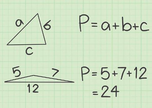 The same logic that has been explained above a number of times goes into finding the perimeter of a triangle. Just like the perimeter of a rectangle or square is found by adding the measure of their all sides, the same can be done when you are dealing with a triangle. So, if the lengths of the three sides of a triangle are 5 inches, 6 inches, and 7 inches, its perimeter would be 5 + 6 + 7, or 18 inches.