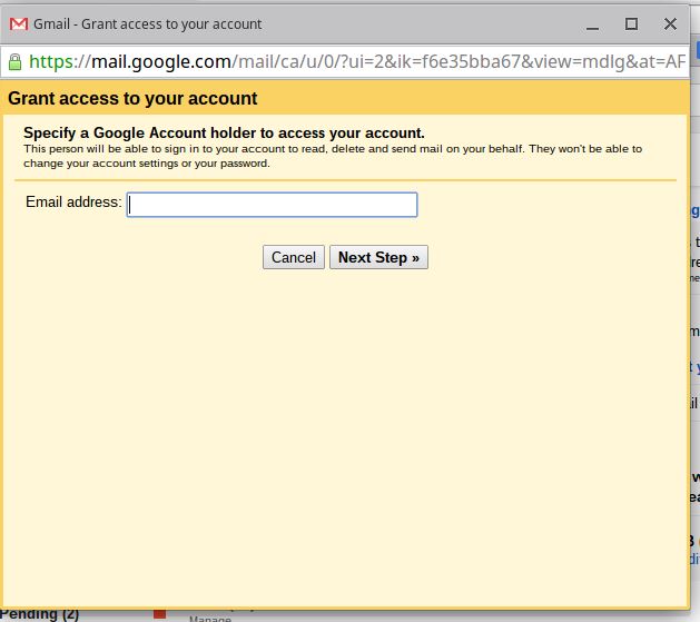 #4. When prompted, enter the email address of the person you want to grant access to your account, and then confirm that you want to share access.