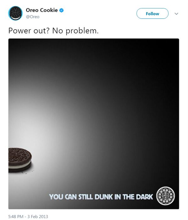 Google Trends offers a detailed minute-by-minute data compiled from over 10 million Google searches to give you a sense of the topics that people are interested in. Oreo, made a great use of this feature in 2013’s Super Bowl when lights went out for 34 minutes. Here is what they immediately tweeted: