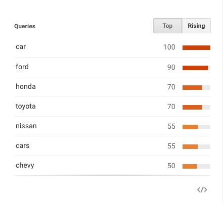 If you’re a big brand, you can make use of the Google Trends’ search tool to know how your products are doing against your competitors. For instance, if you’re a car manufacturer and work in Nissan, you can simply search 'car, ' and you can see where your company ranks in a particular location.