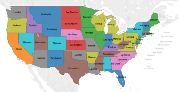 An underused feature of Google Trends is that you can look for consumers’ shopping trends in isolation. You can use that data to sell products that are popular in a particular location. For instance, look at the shopping trends for cosmetics in the US in 2016.