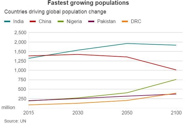 The report titled ‘The World Population Prospects: The 2017 Revision’ suggests that half of the population growth from now till 2050 will be recorded in 10 leading countries listed as India, Nigeria, Congo, Pakistan, Ethiopia, Tanzania, United States, Uganda and Indonesia.