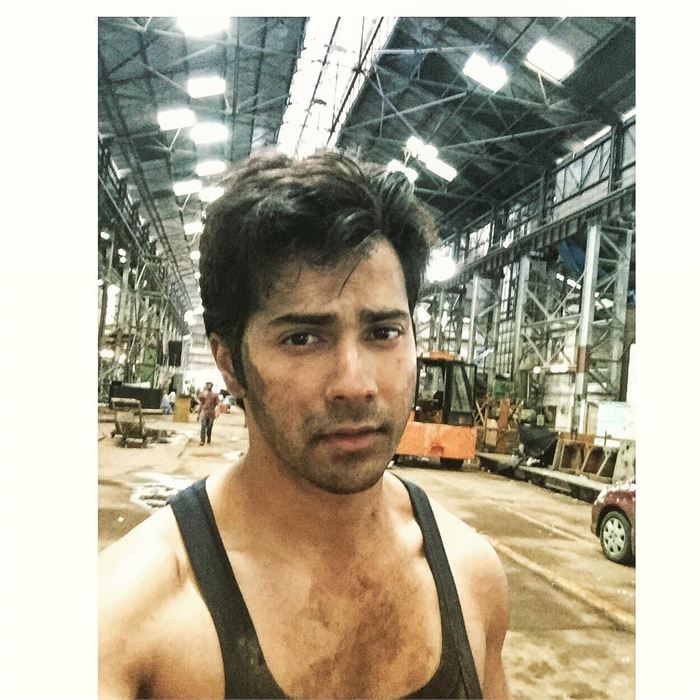 Varun Dhawan posted a pic while shooting an action scene for his upcoming movie Judwaa.