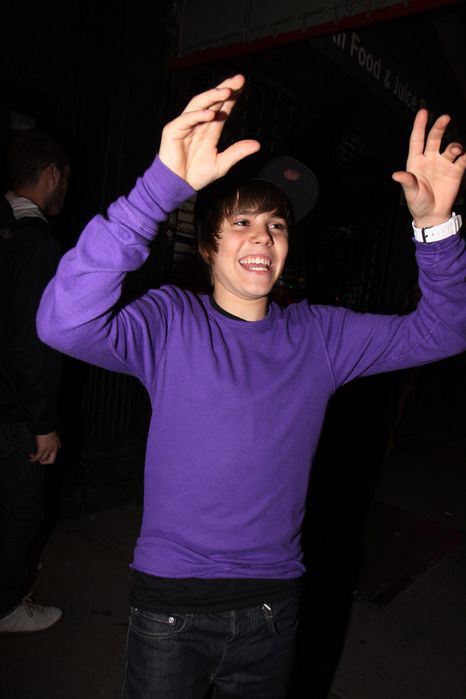 Justin has been a G fan since his early days. The young star throws a peace sign in a backward hat with a large white digital watch accessorizing his wrist. What do you think of JB in purple? We hope you love it because you're about to learn the Biebs is a huge fan of this hue.