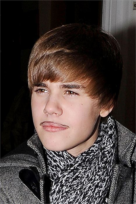 You know you've got it when you can pull off a pencil mustache at the age of sixteen. Justin was out for dinner in London when he decided to get cheeky with a drawn-on mustache for the paparazzi. He wore a charcoal coat with a salt and pepper knit scarf and dark jeans.