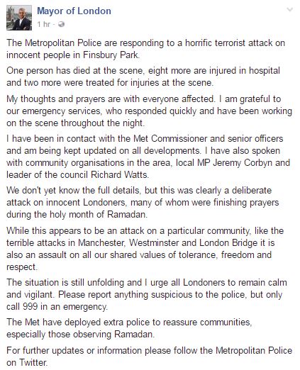 The suspect, a 48-year-old man, was detained by bystanders and later arrested by police after the incident in Finsbury Park, which is being investigated by the UK’s Counter Terrorism Command. The attack is being termed as a “probable terrorist attack” and it comes only weeks after a similar attack happened at London’s Borough market.