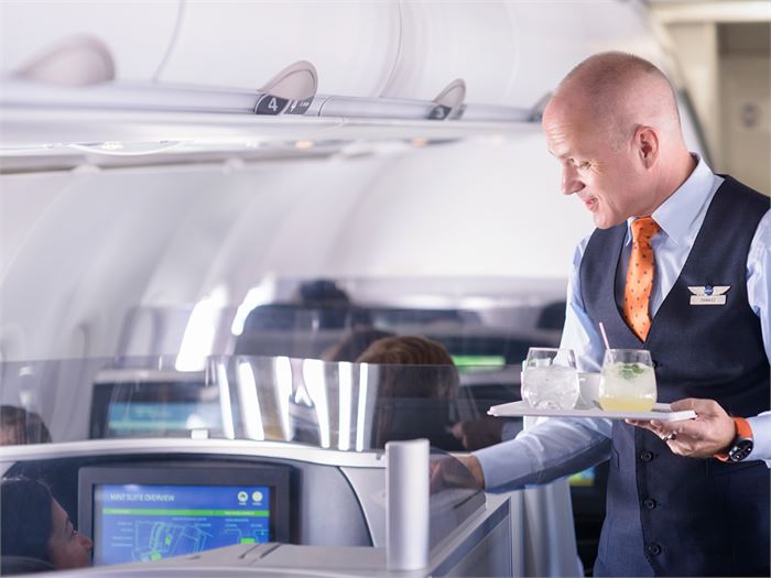 Jet Blue Mint Class is known for providing a fantastic ride. The food served on the flight is praiseworthy. The flight has sliding doors and huge seats for making the journey super comfortable. It flies only from New York/Boston to Los Angeles/ San Francisco.