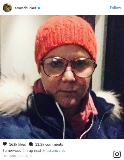 No makeup but a lot of humor and apparently the glasses, because it's Amy Schumer!