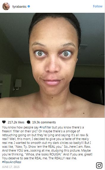 #RawAndReal indeed! Banks showed off a selfie with no filter, no lighting, and no retouching. The caption about wanting to smooth out her dark circles, but she fought the urge just adds to the beauty of the picture. This would surely make the cut for #NoMakeupSelfie of the year.