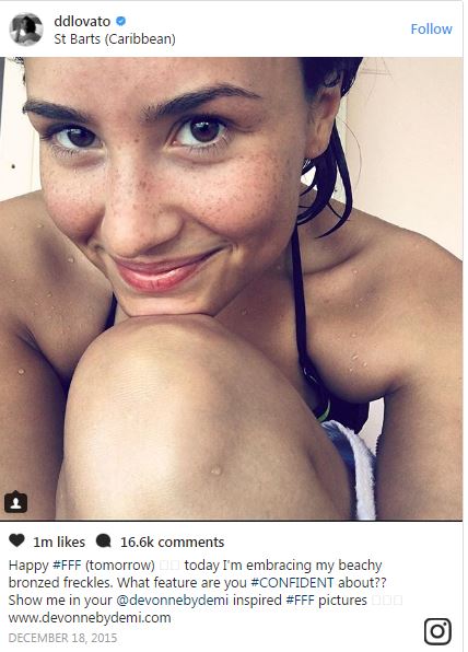 This was one of her #FFF posts — as in "Fresh Faced Friday." Check out her freckles on full display.