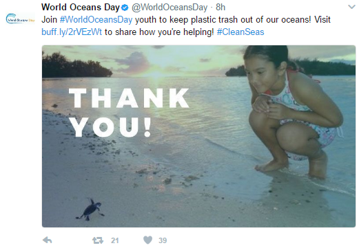 Bill Mott, Executive Director of The Ocean Project in a press release said, “With nearly half of the world’s population under age 25, it is imperative to empower young people to step up as leaders at an early age and engage them in a solutions-oriented approach to ocean conservation. The use of trends like #CleanSeas and #WorldOceansDay on social media have also been encouraged by the UN.