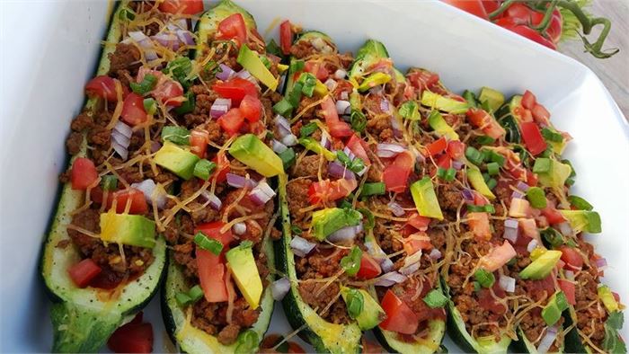 #6. Ground Beef Enchilada Zucchini Boats
