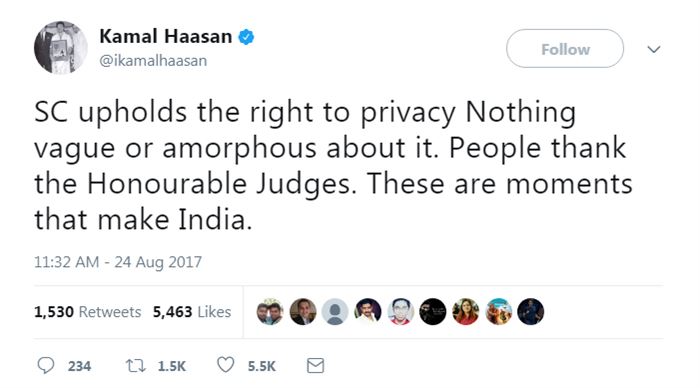 India is shifting gears and moving towards a digital age. In such times, the need for every citizen's privacy should be of utmost importance for the nation. Landmark day in India's judiciary and surely good things lie ahead.