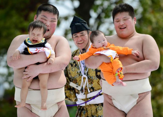 #1. Sumo Wrestlers Make Babies Cry As A Tradition In Japan