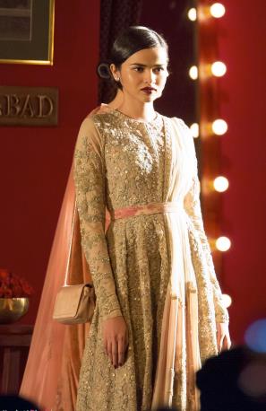 8. An innovative way of wearing a dupatta, especially over an Anarkali suit, is tucking it under a waist belt.