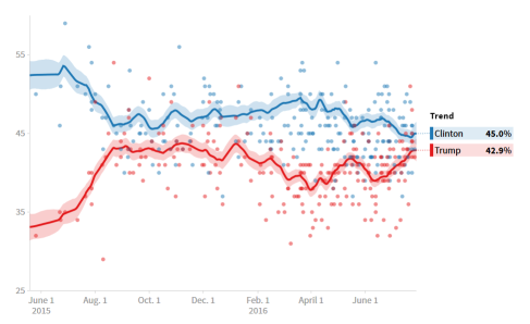Donald Trump is riding high in all polls re, Hillary Clinton gets minor to leads in all six of the latest national polls released since Saturday.