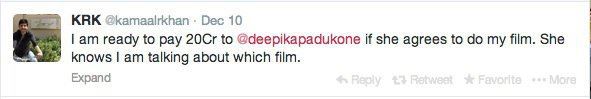There was this time when KRK made a very special offer to Deepika Padukone that no Bollywood actress will ever dare to refuse. Well, it involved freaking 20 crores and a supposedly shady film. Could it get any better?