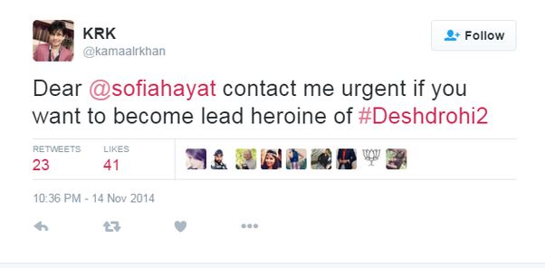We all remember the time when KRK offered Sofiya Hayat a role in his movie. Who would say no to a lifetime opportunity like this? Well, KRK just took Twitter and casting to a whole new level altogether with this hilarious tweet.