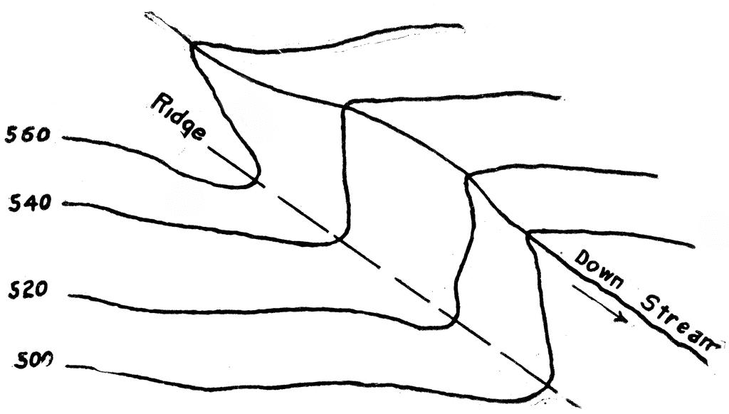 This is the defining feature of any topographic map. A contour line is a line that joins points of equal elevation on the map so that the reader knows the height that he is on. Contour lines never intersect each other as each line is dedicated to a particular elevation.